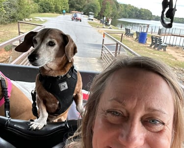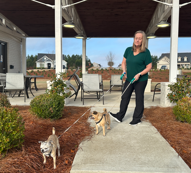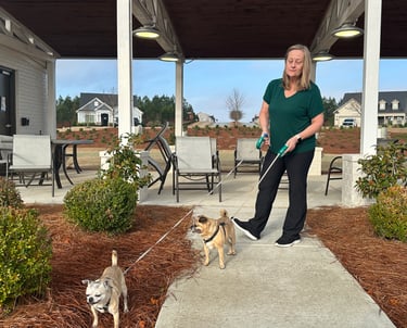 We care for your dogs like family, offering walks, in-home visits, golf cart rides, and private home boarding in Peachtree City.